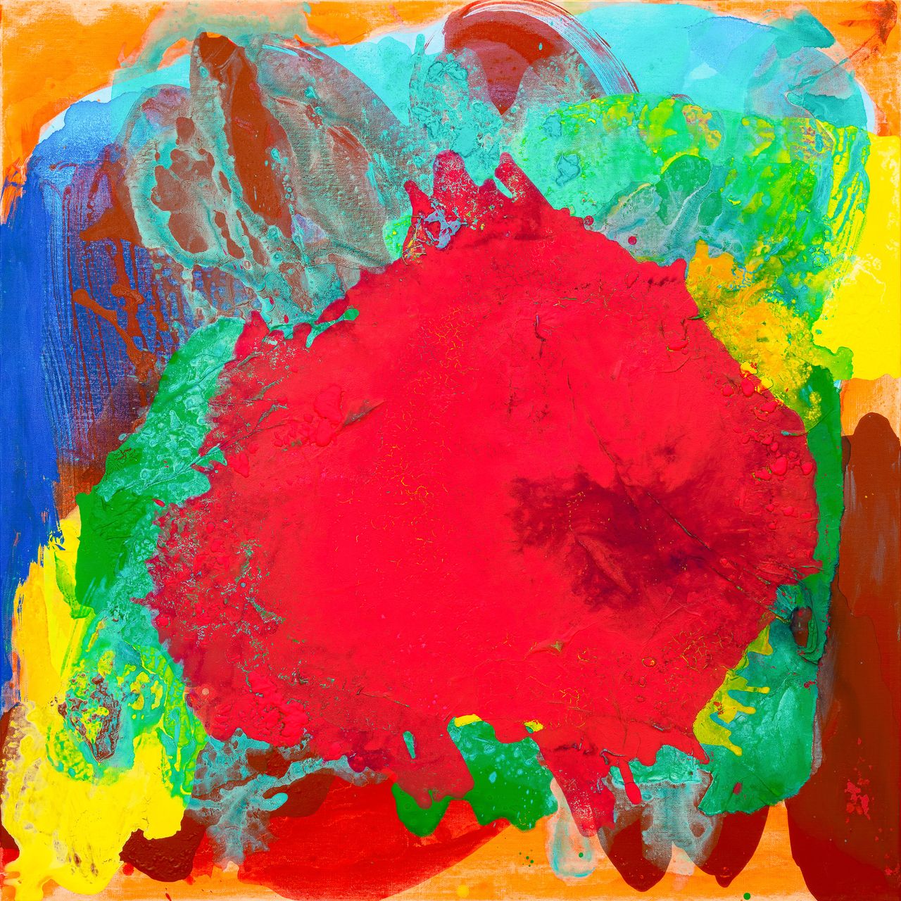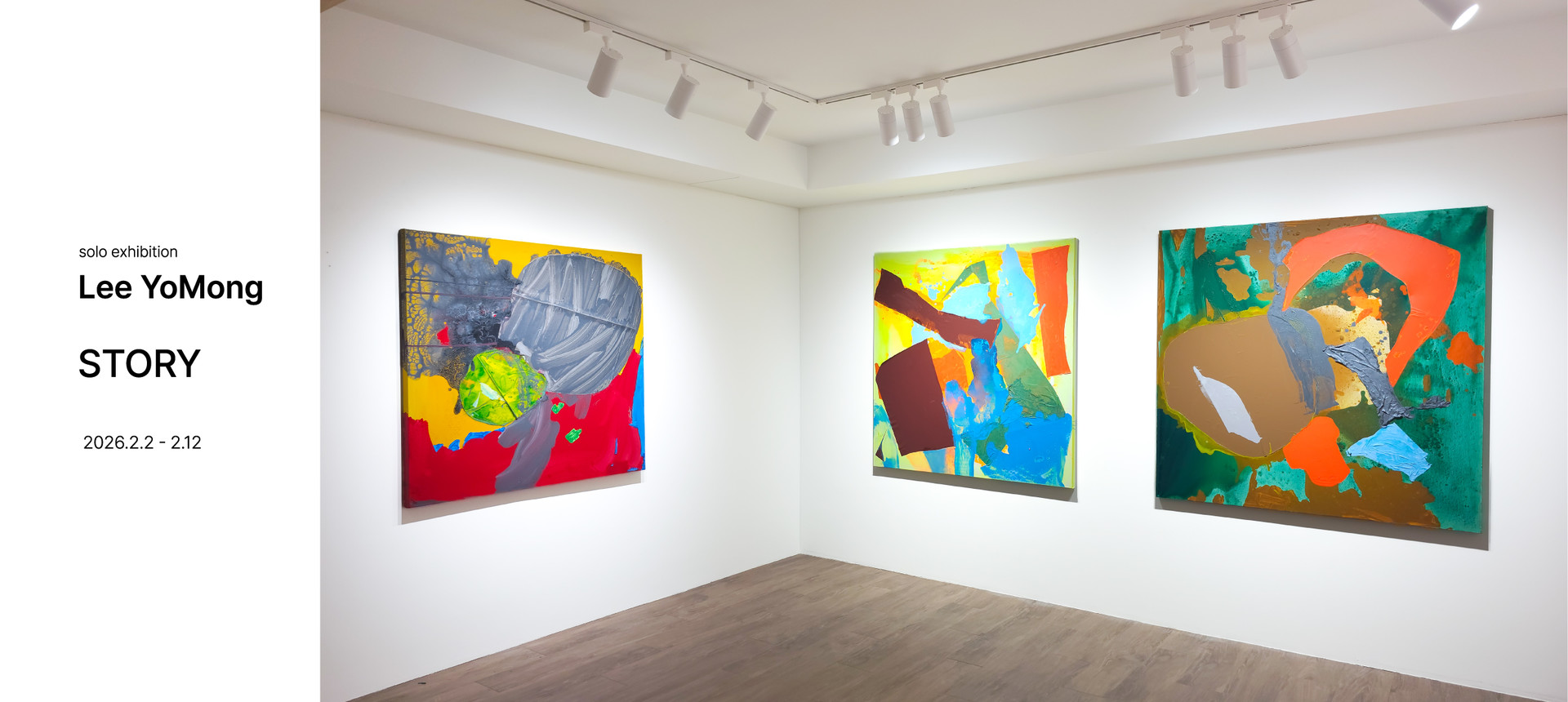 작가는 자유로운 생각과 감정을 색·선·형태로 표현하고자 하며, 붓의 제스처 대신 ‘부어지고 응고되는 색’이 스스로 형태를 만들도록 자율성을 부여합니다.